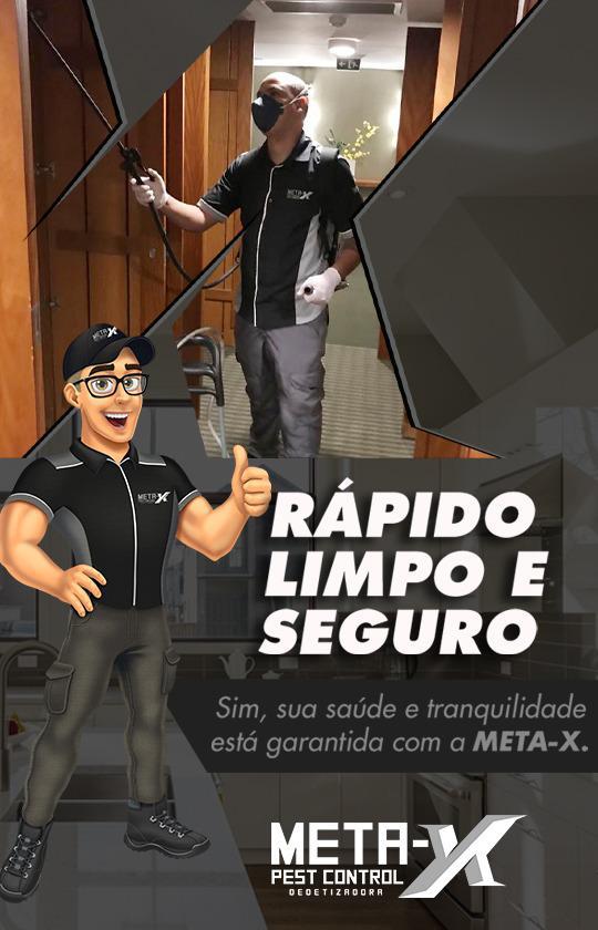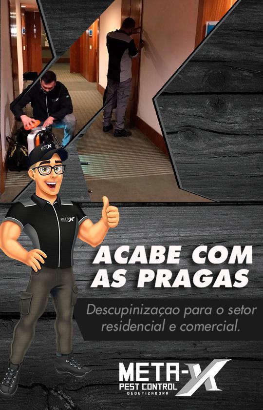 A META-X atua no Controle e Monitoramento Integrado de Pragas (CEMIP) a fim de garantir a seus clientes e parceiros melhores condições de higiene em seus estabelecimentos. Combater e controlar pragas exige adequada capacitação técnica e permanente aperfeiçoamento de métodos (o que é moderno hoje pode ser obsoleto amanhã), através de pesquisas e experiências.